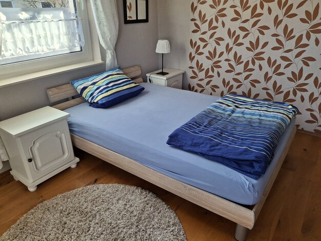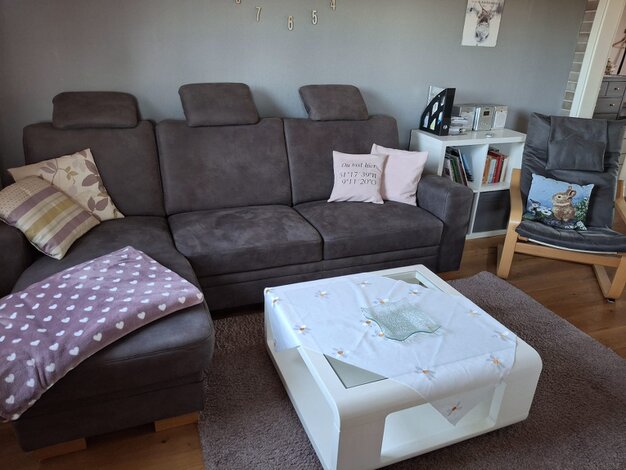 Das Wohnzimmer ist mit einem Kaminofen ausgestattet. Brennholz und Anzünder stehen kostenlos zur Verfügung