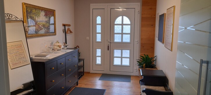 Im Eingang befindet sich eine Kommode für Kleinigkeiten, sowie eine Abstellmöglichkeit für Schuhe